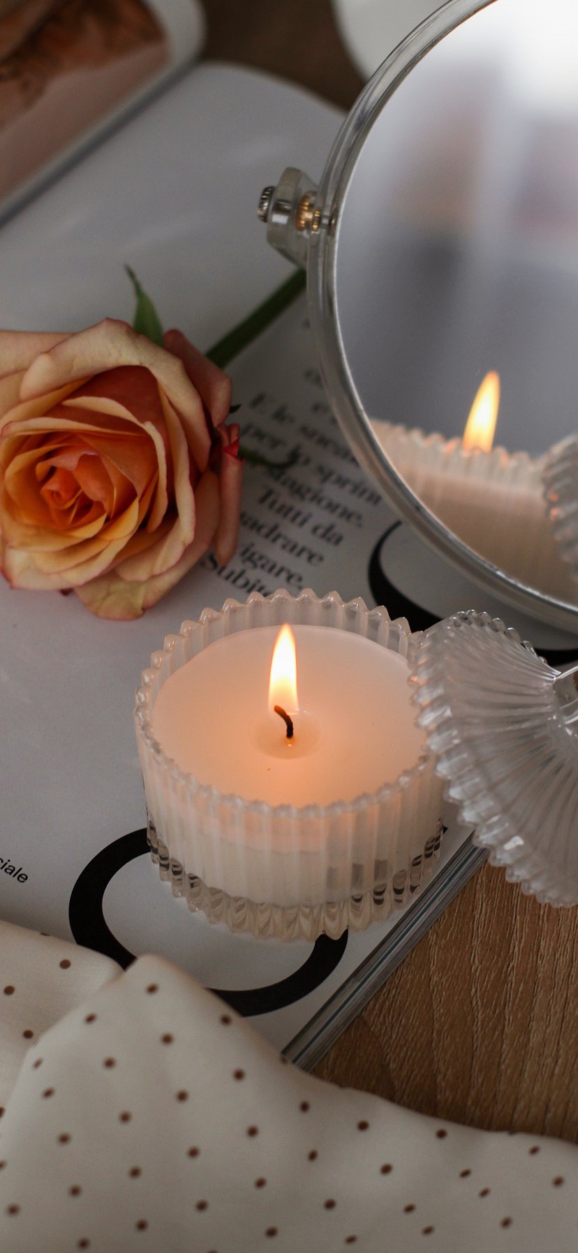 Обои: розовая роза, свеча, эстетика - 828x1792