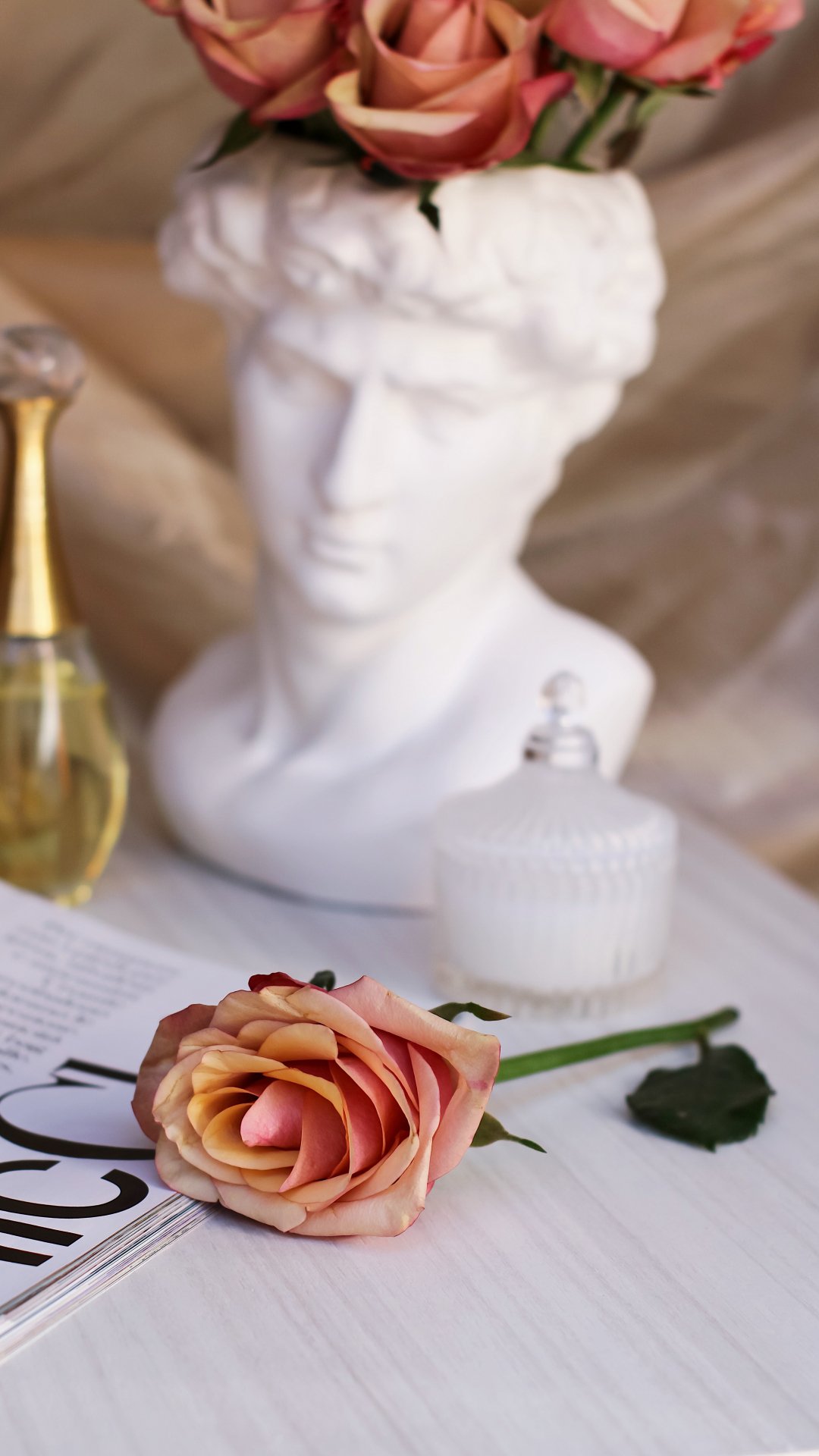 Обои: розовая роза, Давид, эстетика - 1080x1920