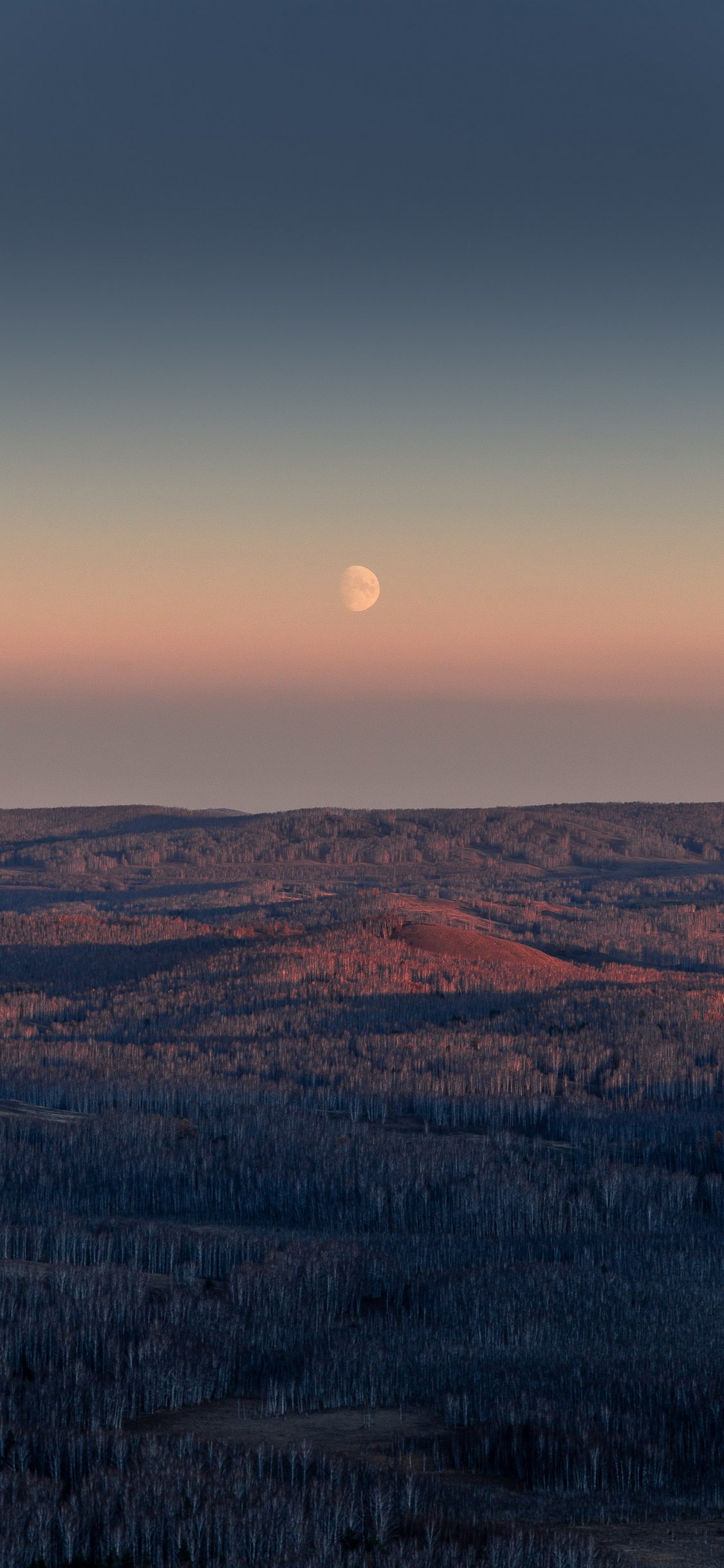 Обои: пейзаж, восход, луна - 1125x2436