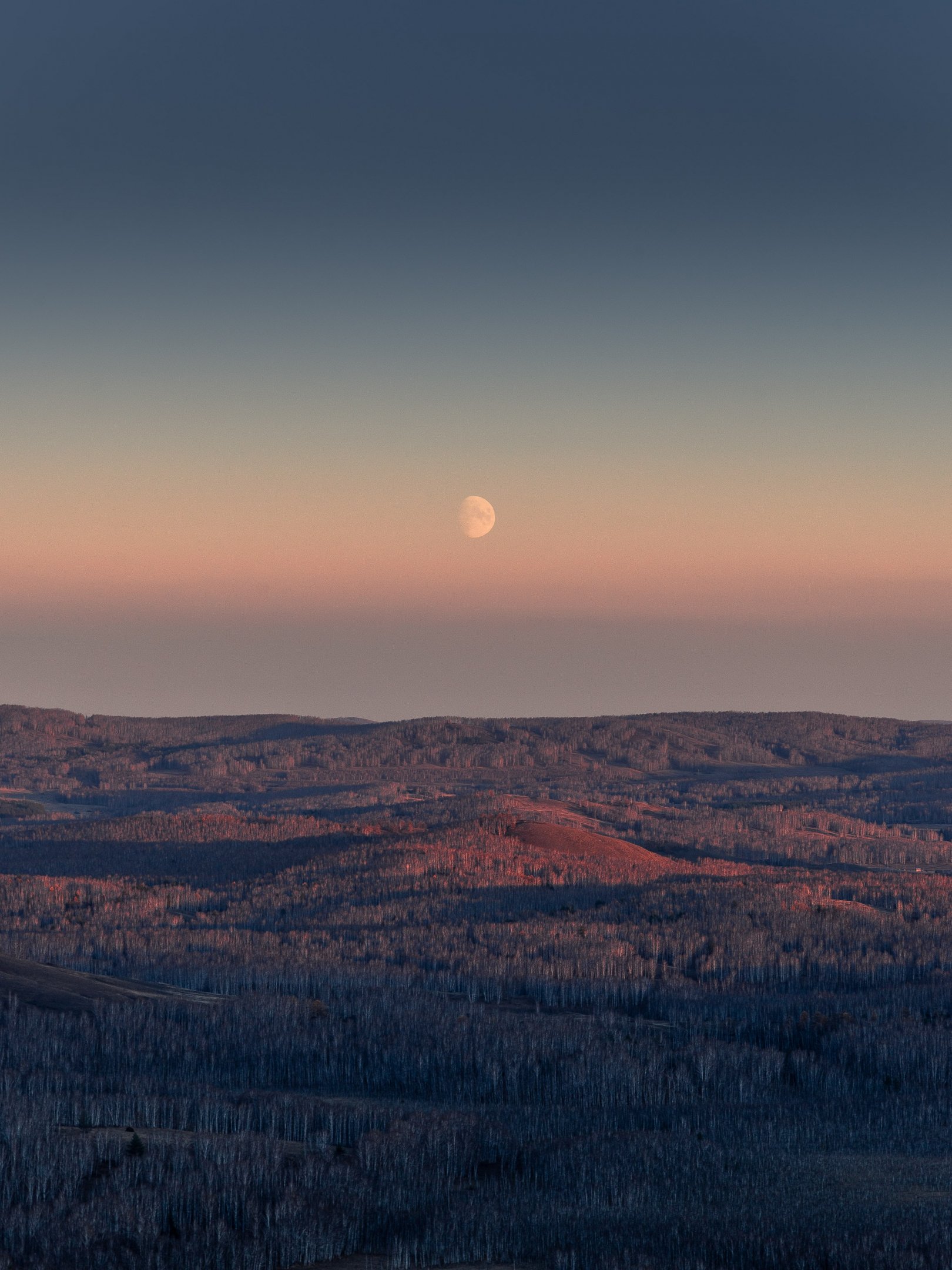 Обои: пейзаж, восход, луна - 1620x2160