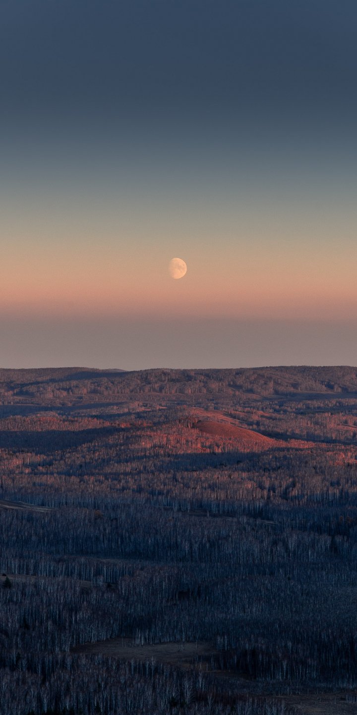 Обои: пейзаж, восход, луна - 720x1440