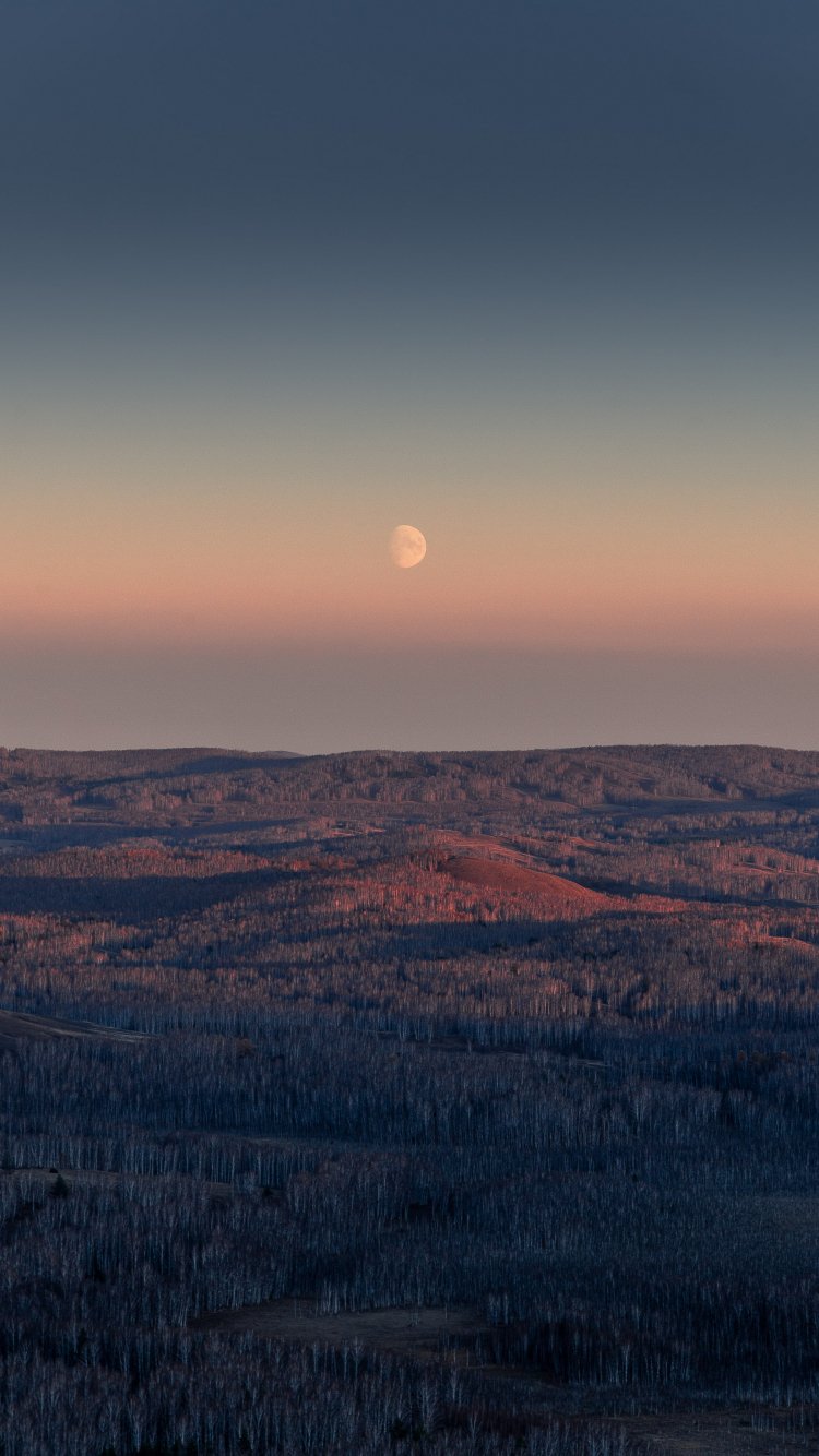 Обои: пейзаж, восход, луна - 750x1334