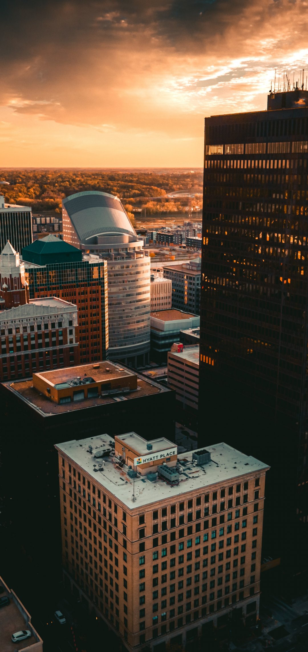 Обои: Де-Мойн, закат, вид с высоты птичьего полета - 1080x2280