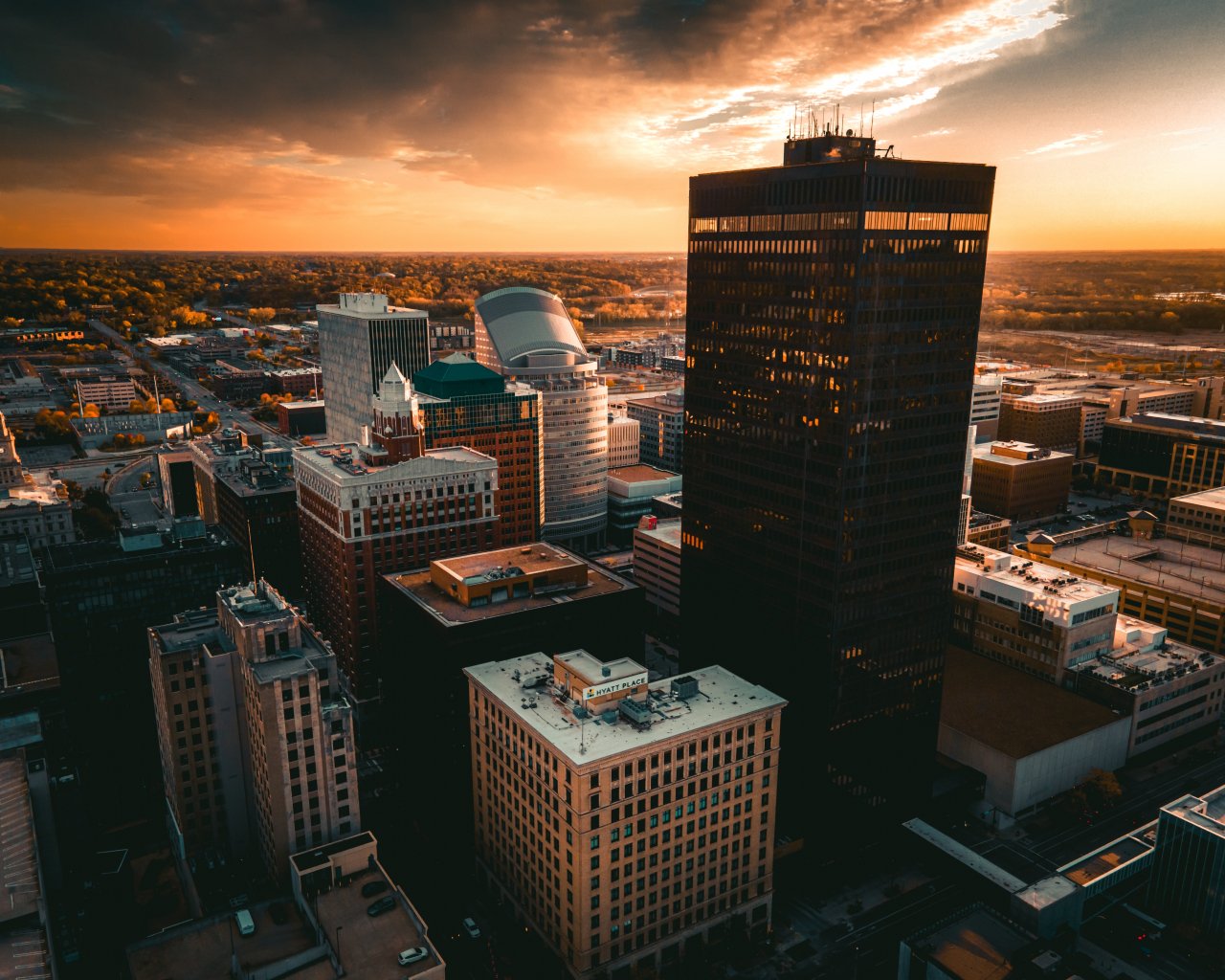 Обои: Де-Мойн, закат, вид с высоты птичьего полета - 1280x1024