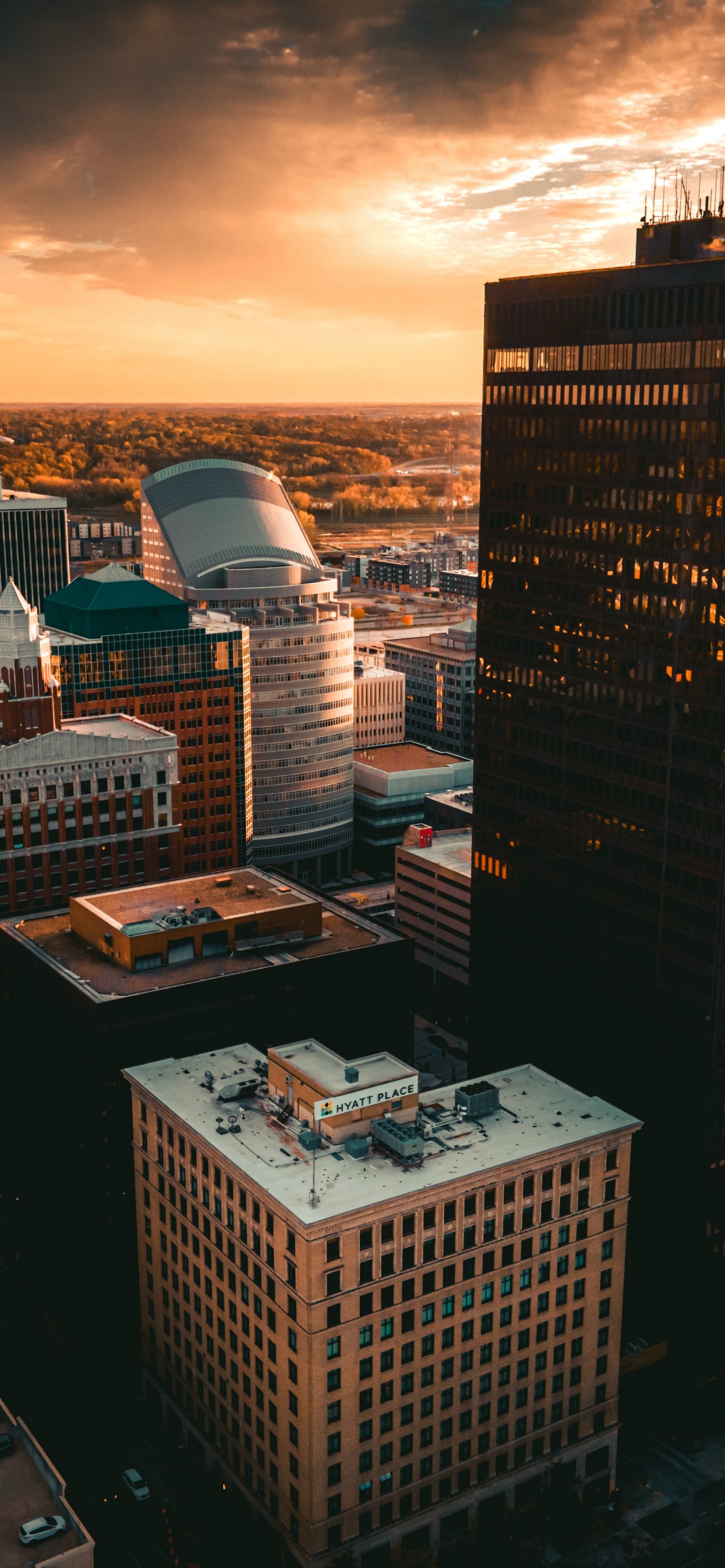 Обои: Де-Мойн, закат, вид с высоты птичьего полета - 1284x2778
