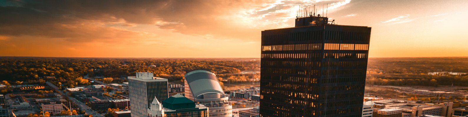 Обои: Де-Мойн, закат, вид с высоты птичьего полета - 1590x400