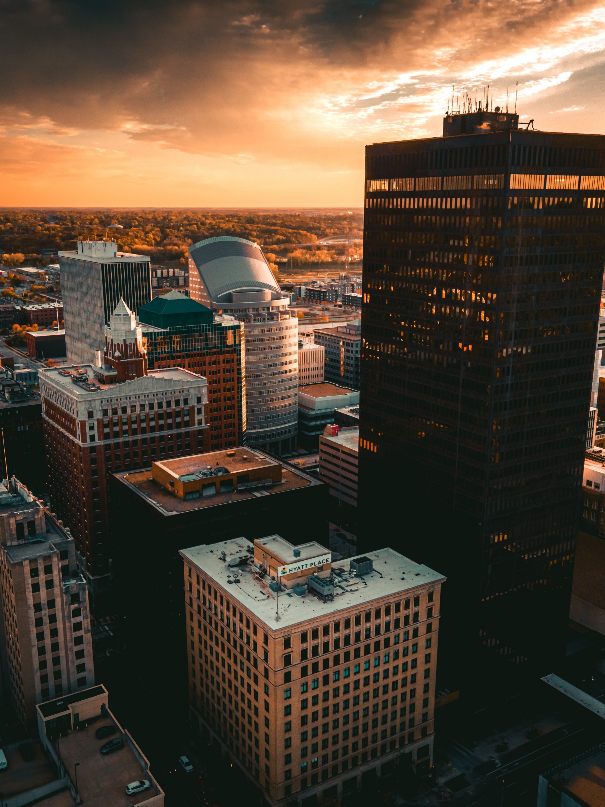 Обои: Де-Мойн, закат, вид с высоты птичьего полета - 2048x2732