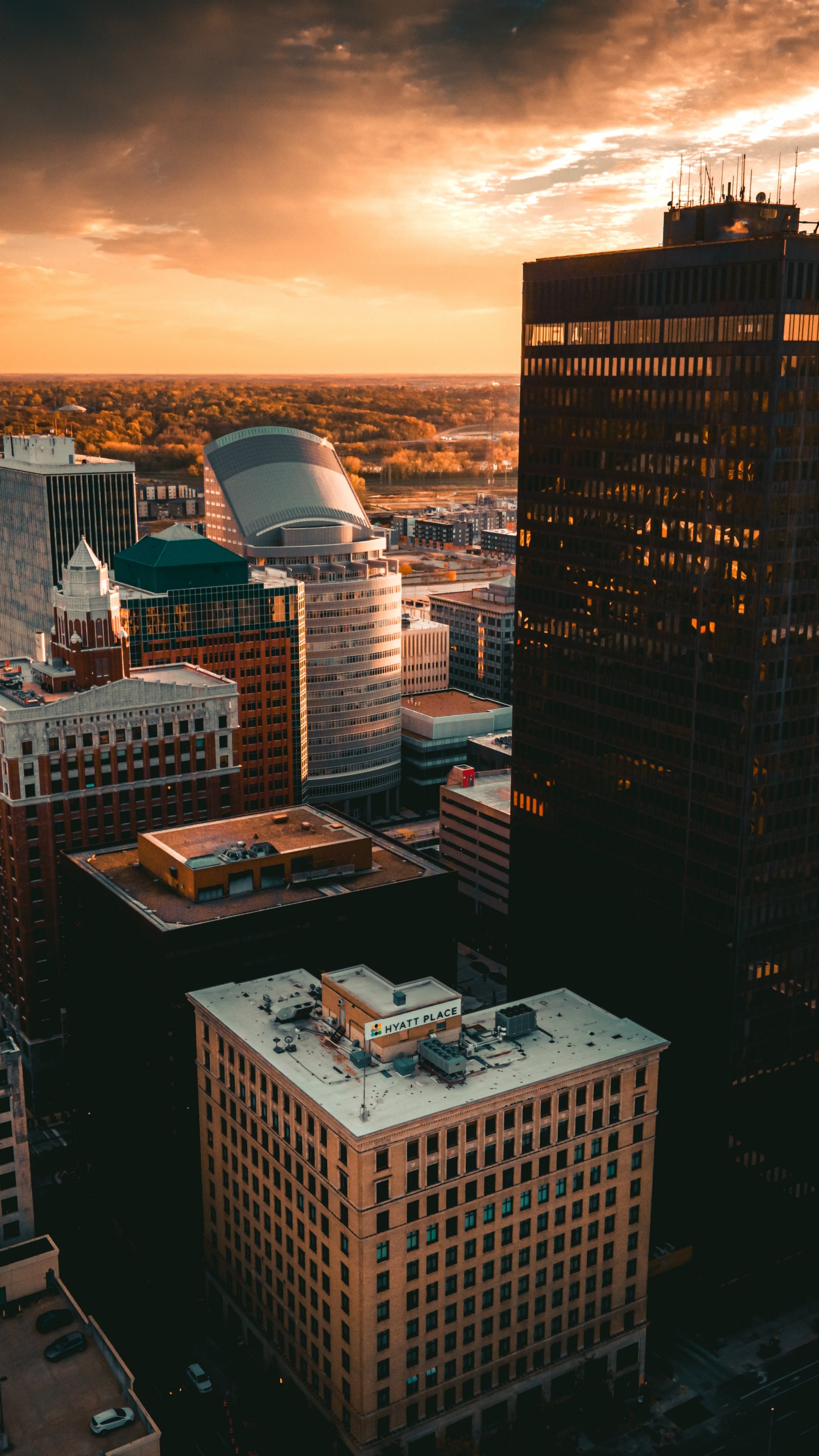 Обои: Де-Мойн, закат, вид с высоты птичьего полета - 2160x3840