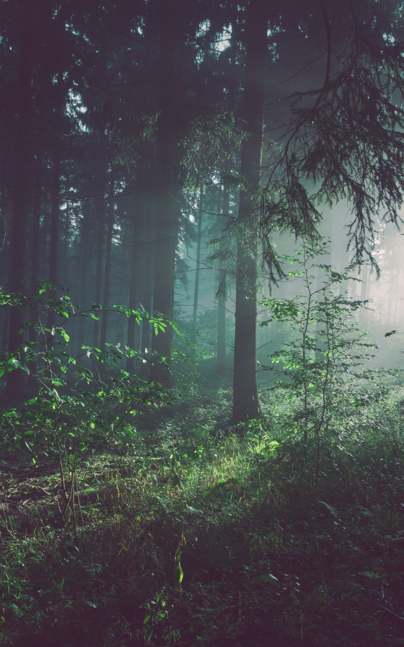 Обои: лес, туман, зеленый - 800x1280