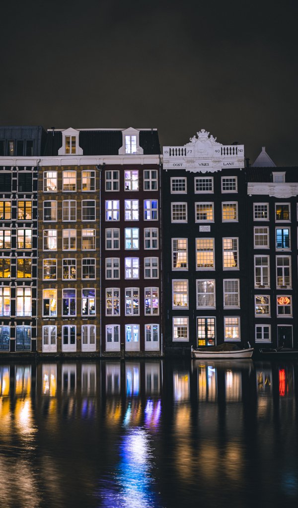 Амстердам, канал, ночной город