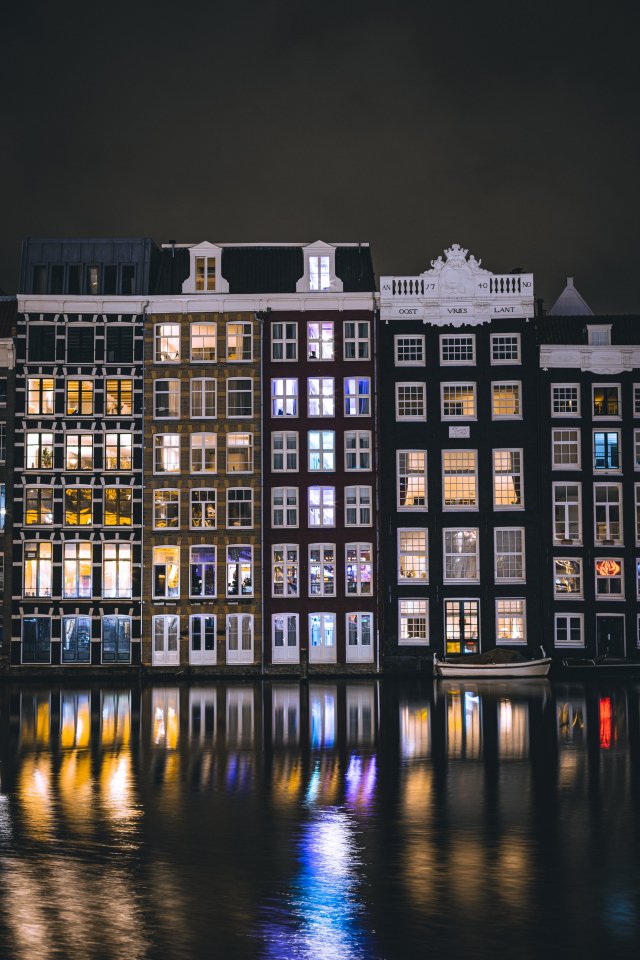 Амстердам, канал, ночной город