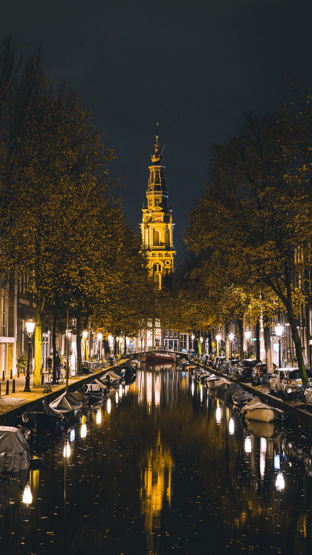 Обои: Амстердам, канал, ночной город - 1080x1920