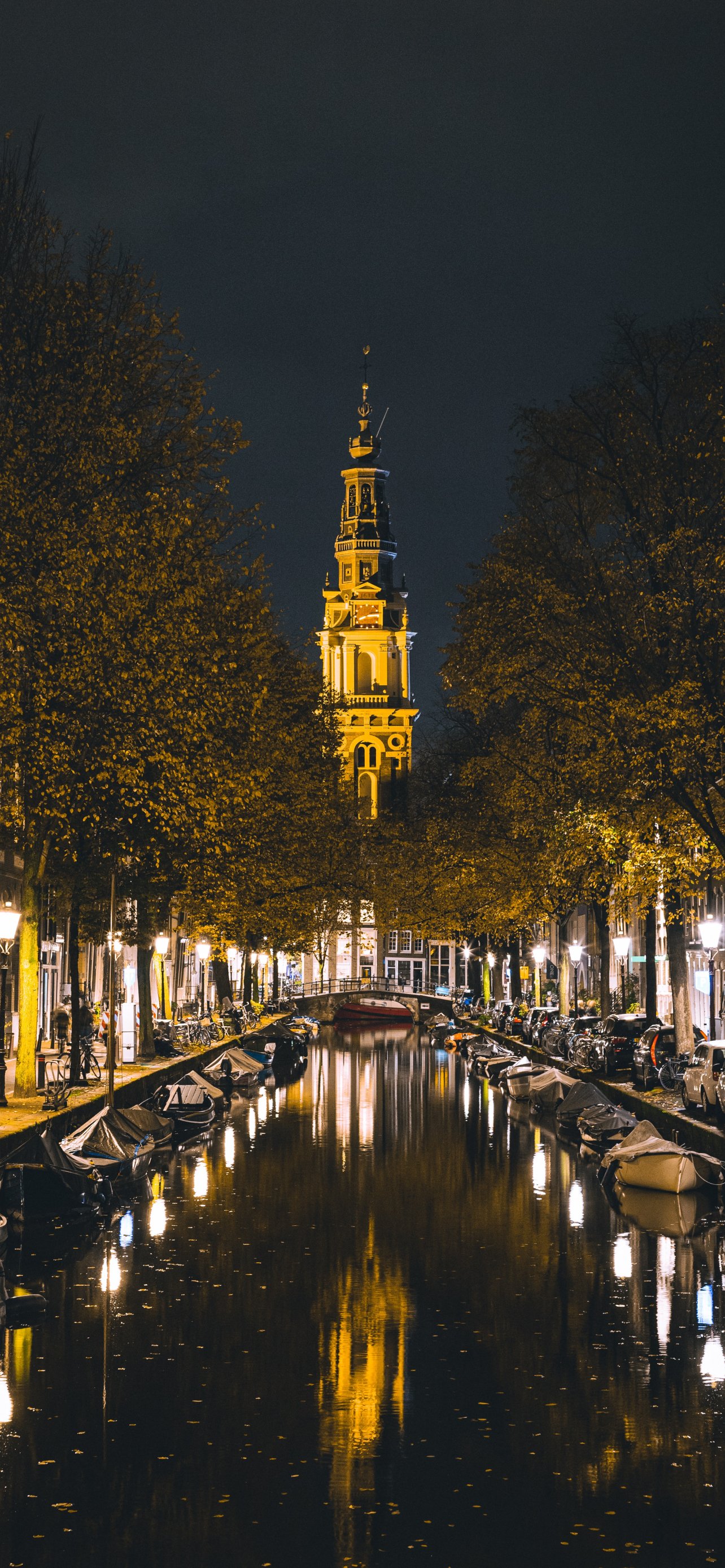 Обои: Амстердам, канал, ночной город - 1284x2778