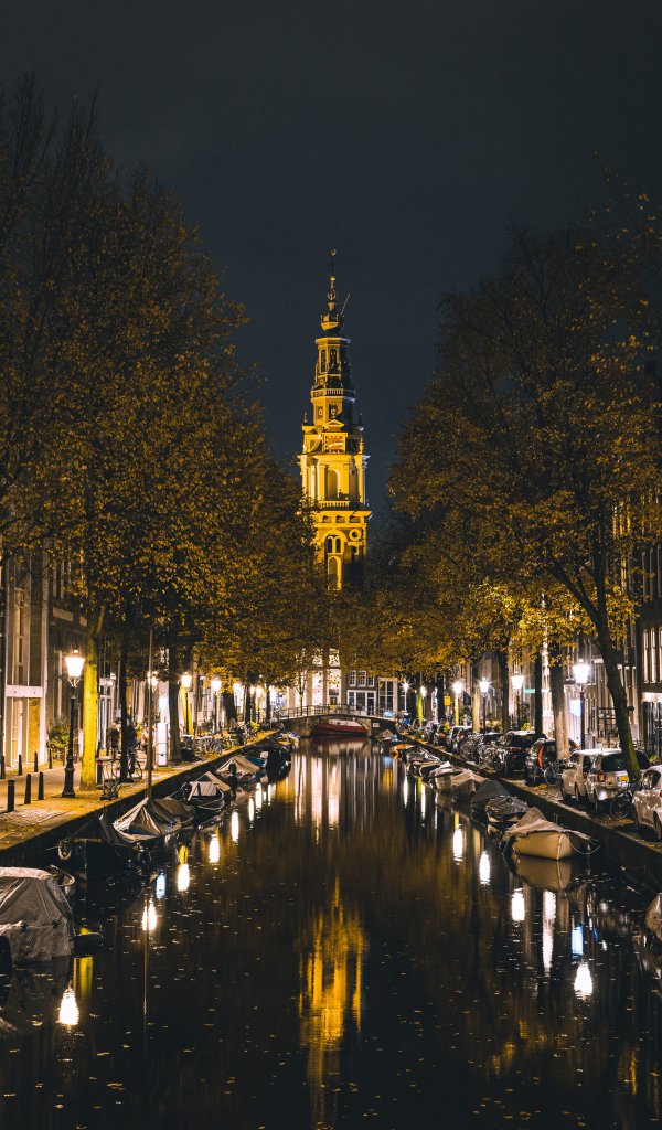 Обои: Амстердам, канал, ночной город - 600x1024
