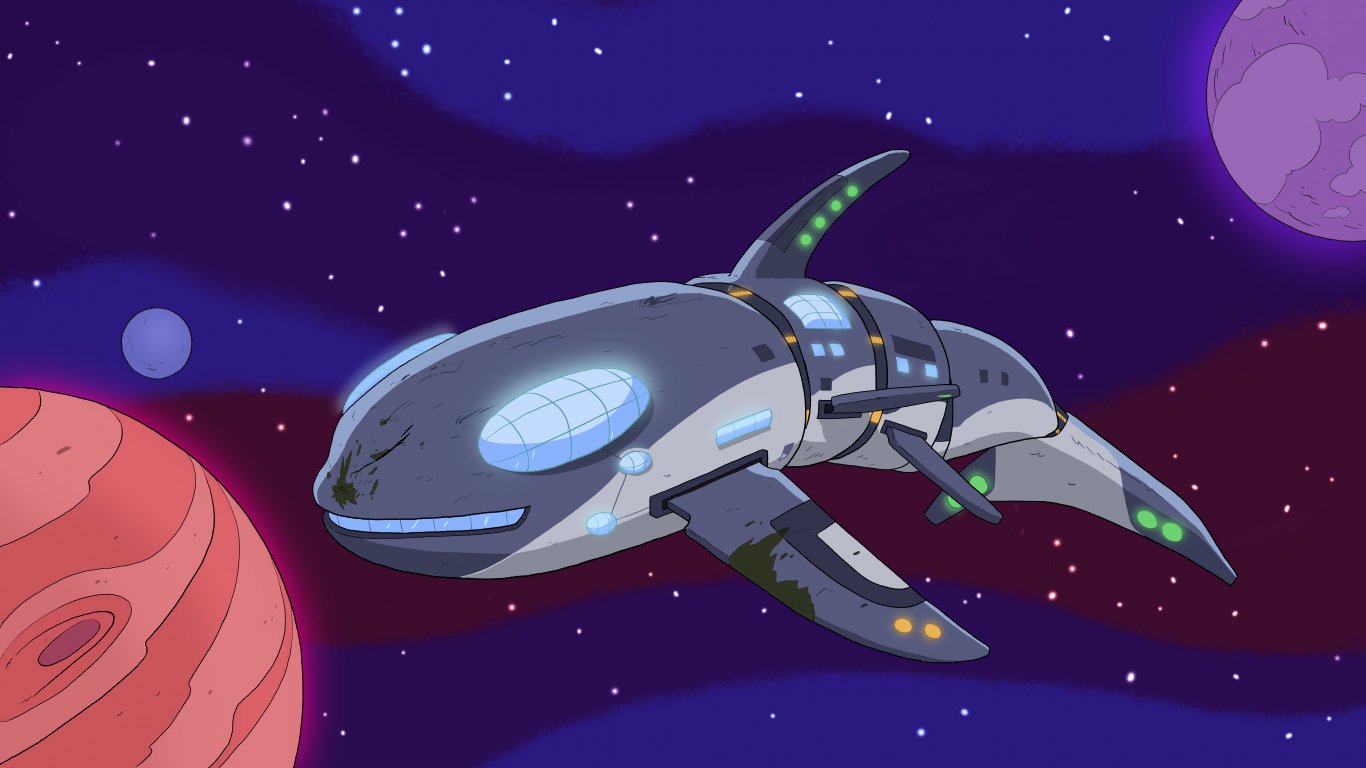 Обои: рисунок, акула, планеты - 1366x768