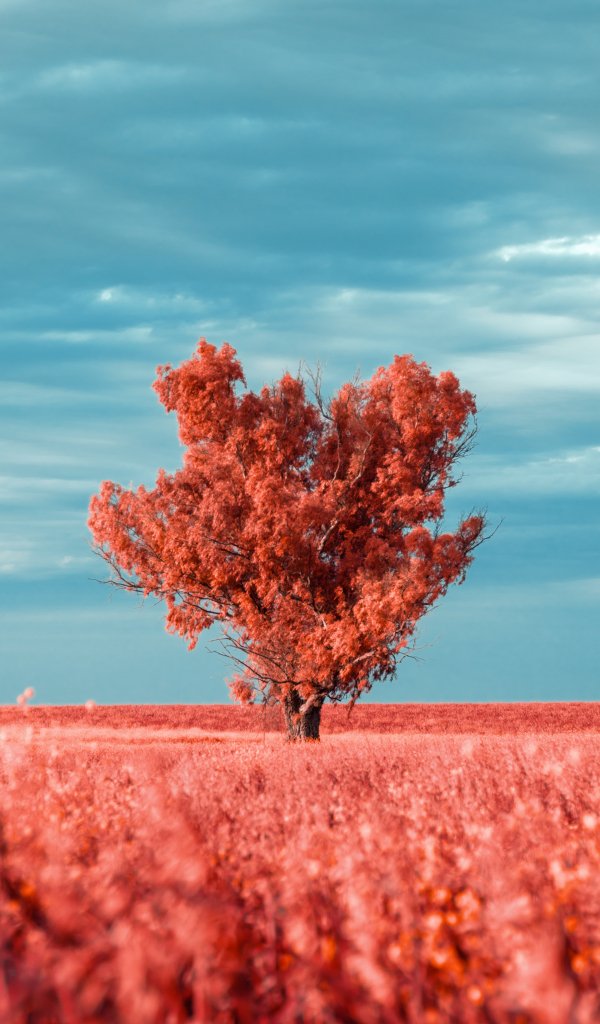 Обои: дерево, пейзаж, красный - 600x1024