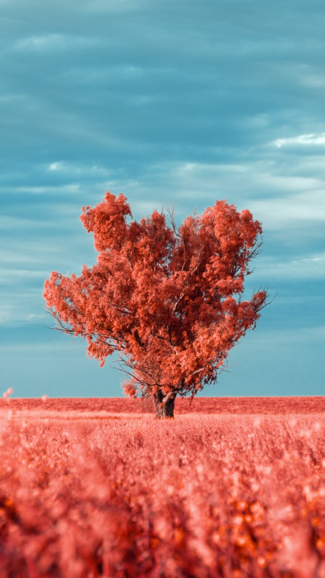 Обои: дерево, пейзаж, красный - 640x1136