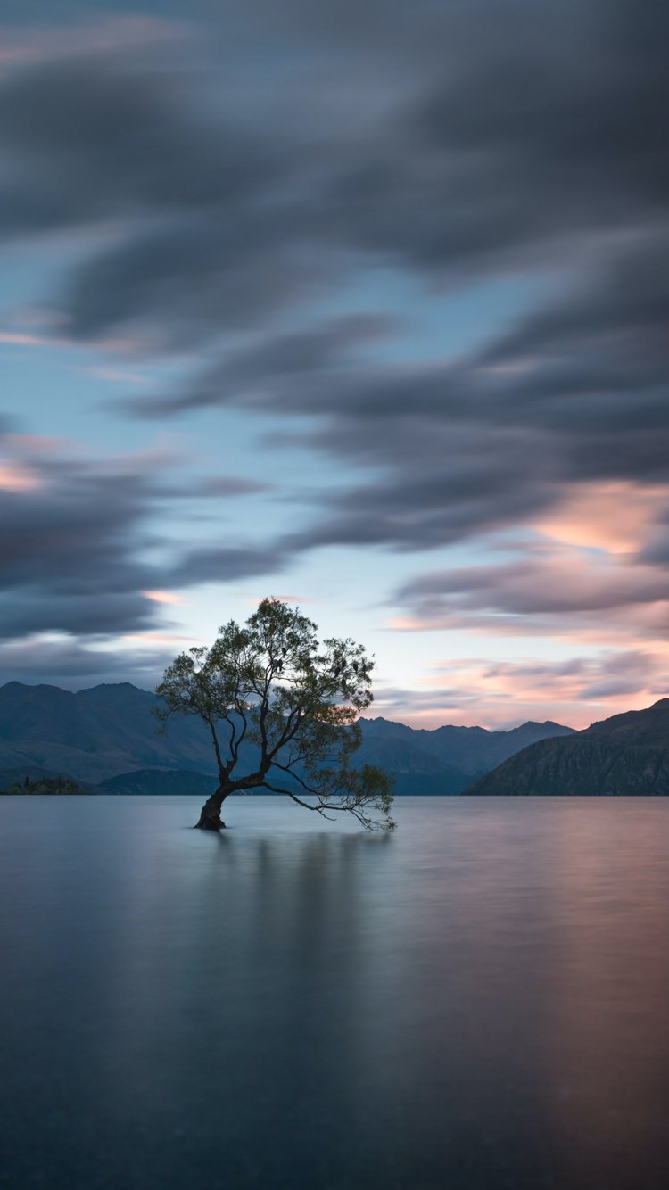 Обои: озеро Уанака, дерево, пейзаж - 750x1334