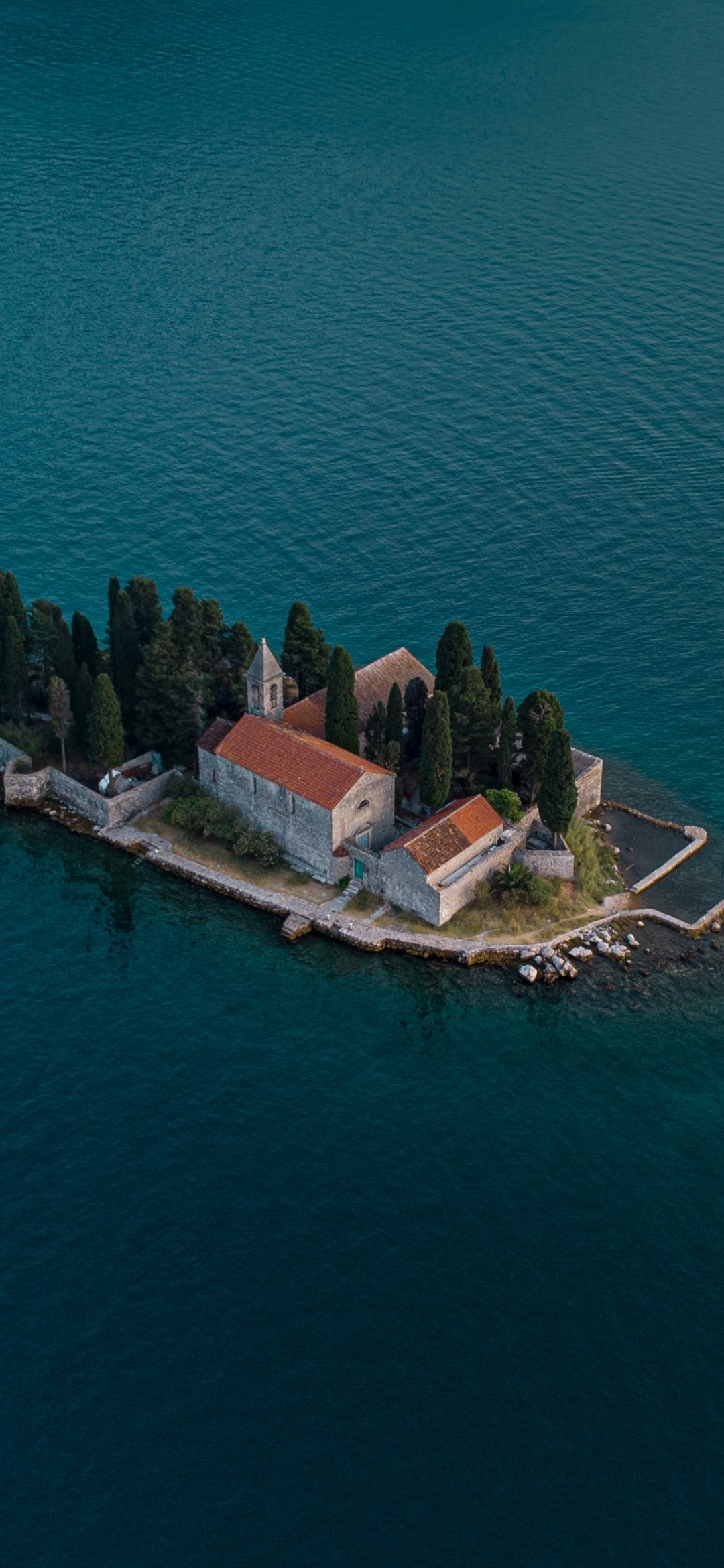 Обои: остров, вид с высоты птичьего полета, Которский залив - 1080x2340
