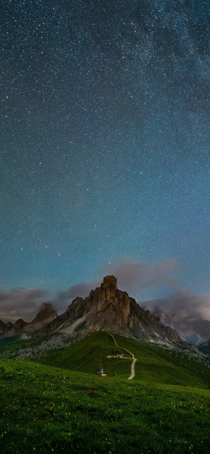 Обои: звездное небо, пейзаж, скала - 828x1792