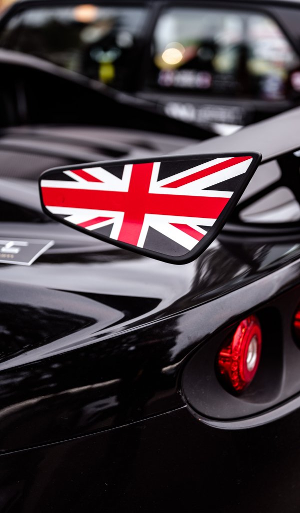 Обои: черный, спортивная машина, флаг Великобритании - 600x1024