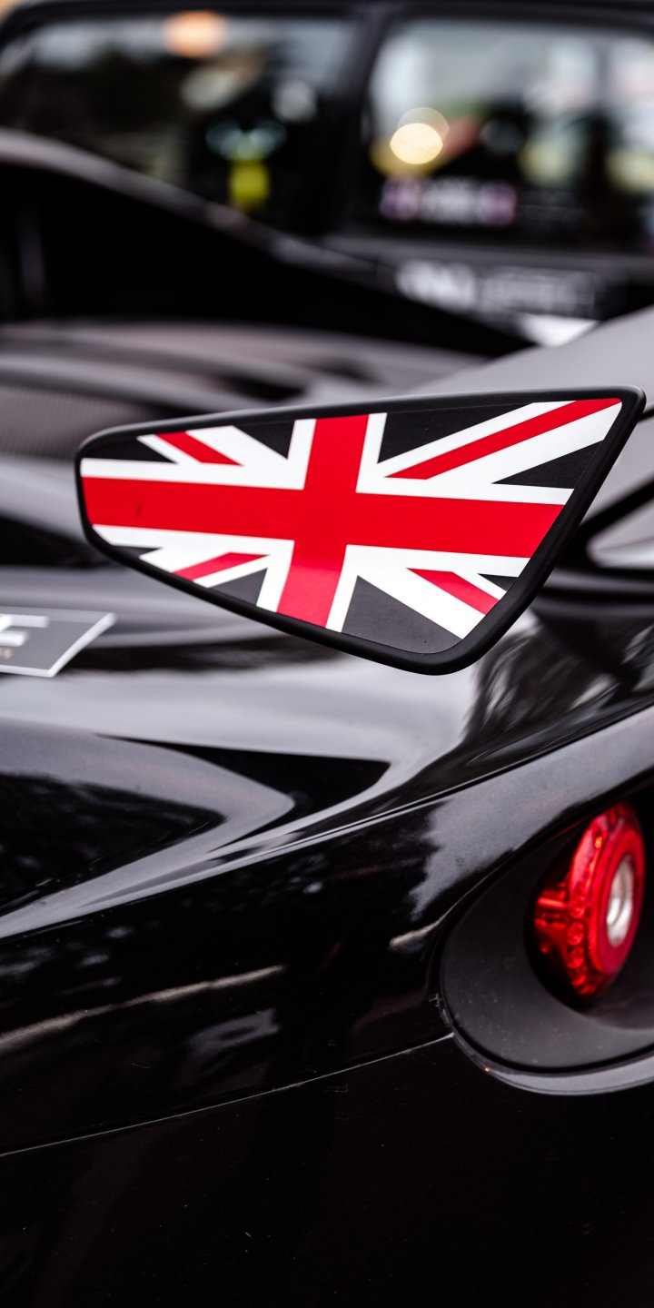 Обои: черный, спортивная машина, флаг Великобритании - 720x1440