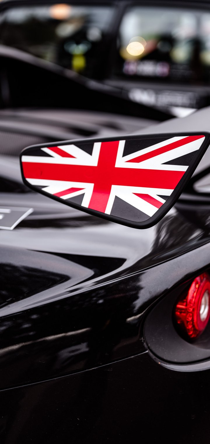 Обои: черный, спортивная машина, флаг Великобритании - 720x1520