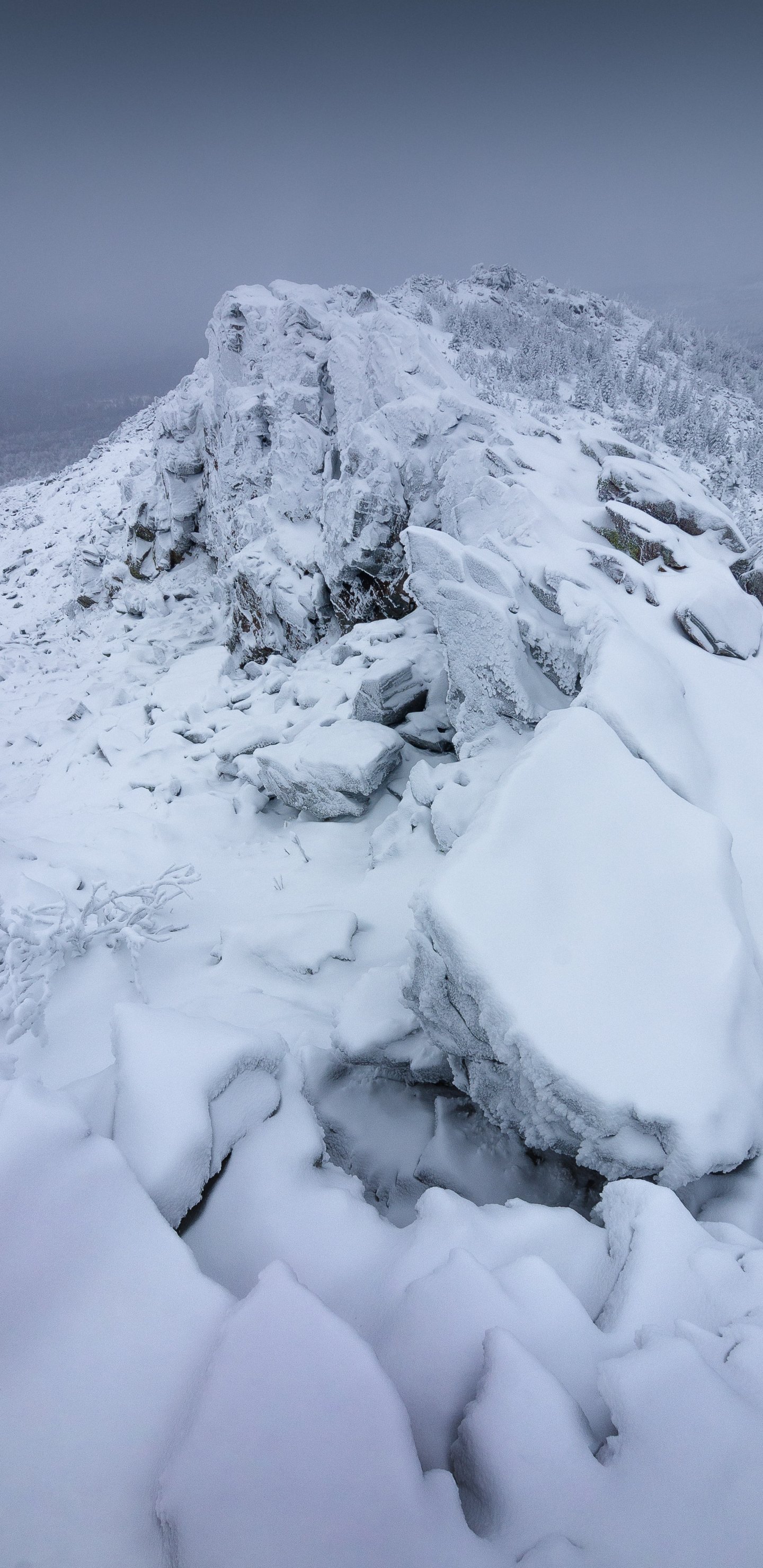 Обои: горный хребет, снег, зима - 1440x2960