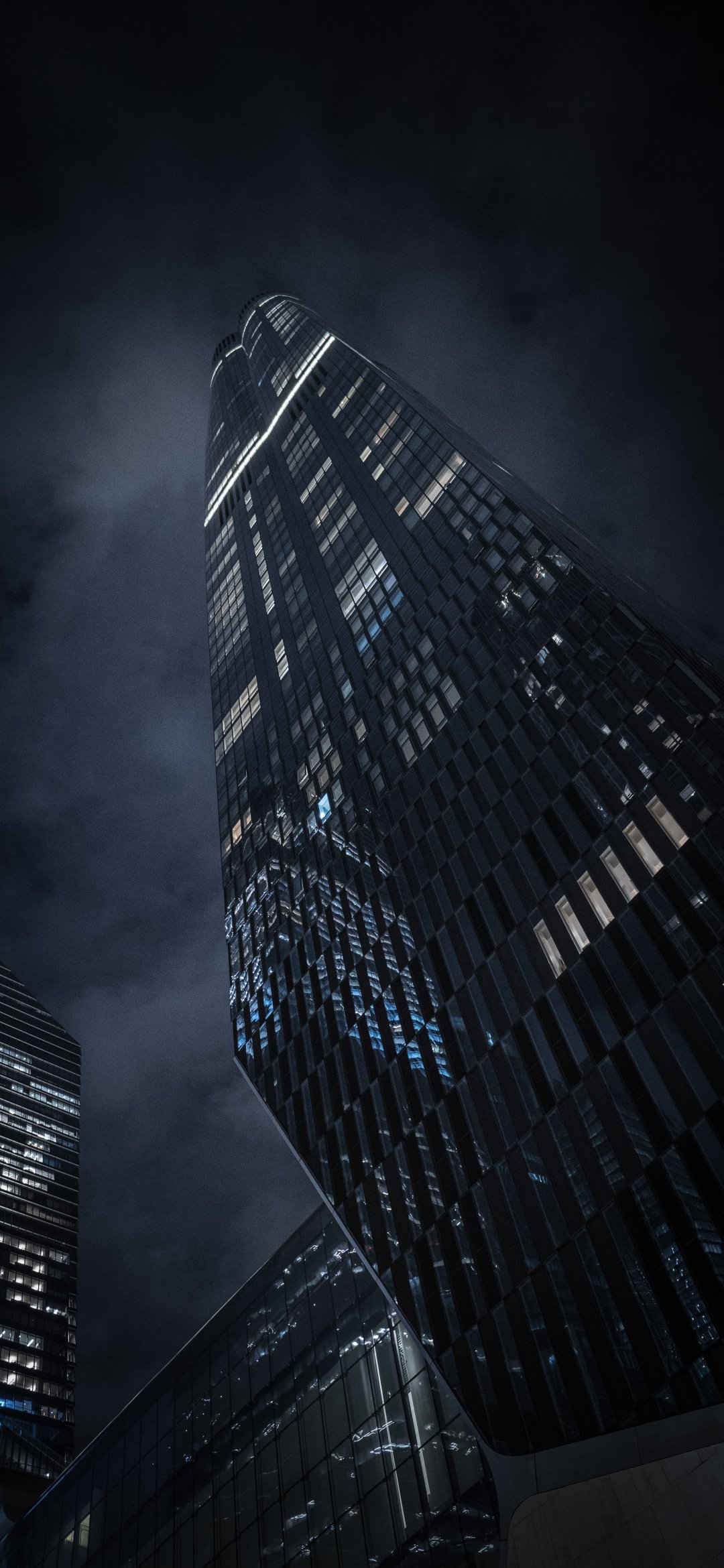 Обои: небоскреб, ночной город, черный - 1080x2340
