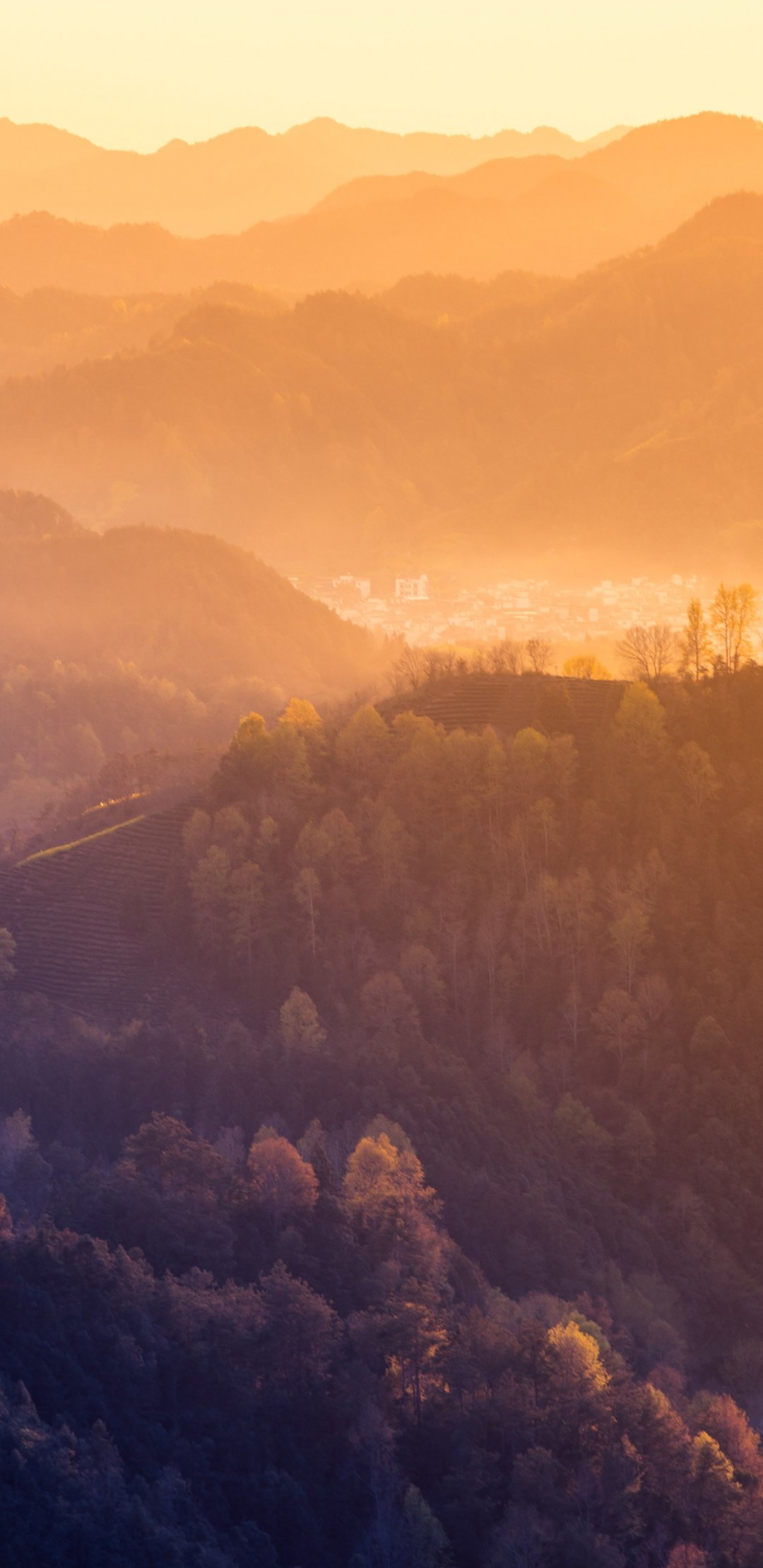 Обои: вид с высоты птичьего полета, горный хребет, рассвет - 1080x2220