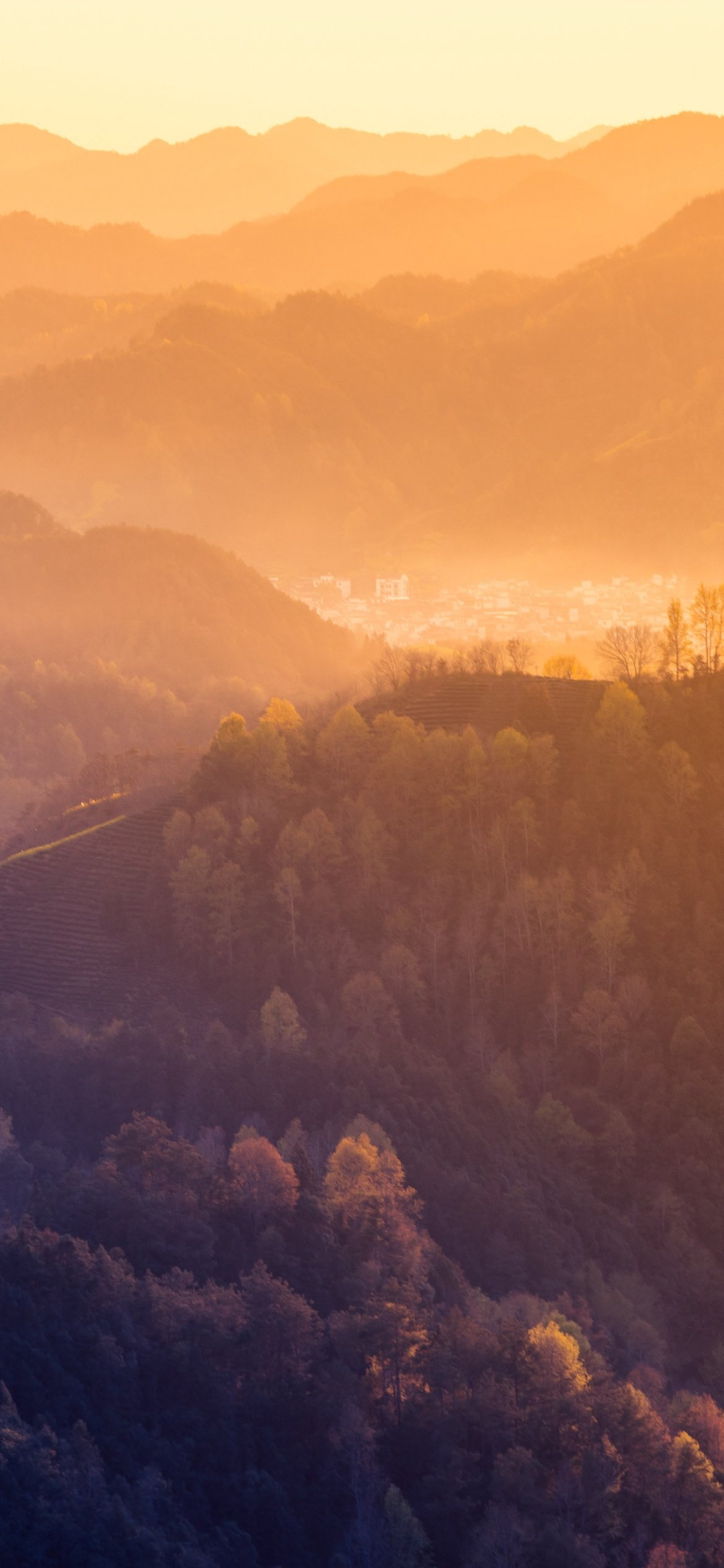 Обои: вид с высоты птичьего полета, горный хребет, рассвет - 1170x2532