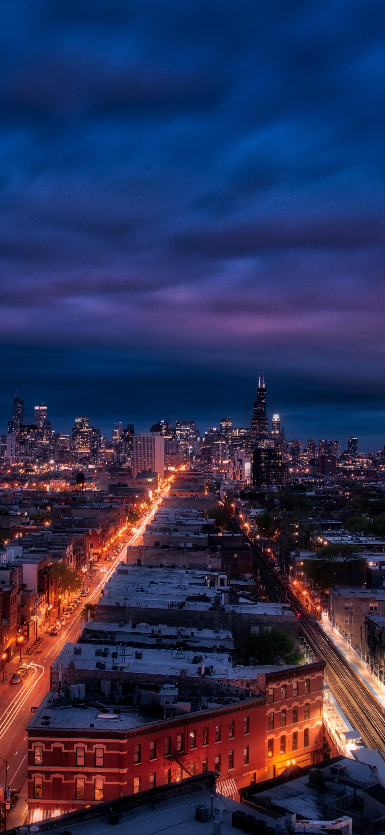 Обои: Чикаго, ночной город, мегаполис - 1242x2688