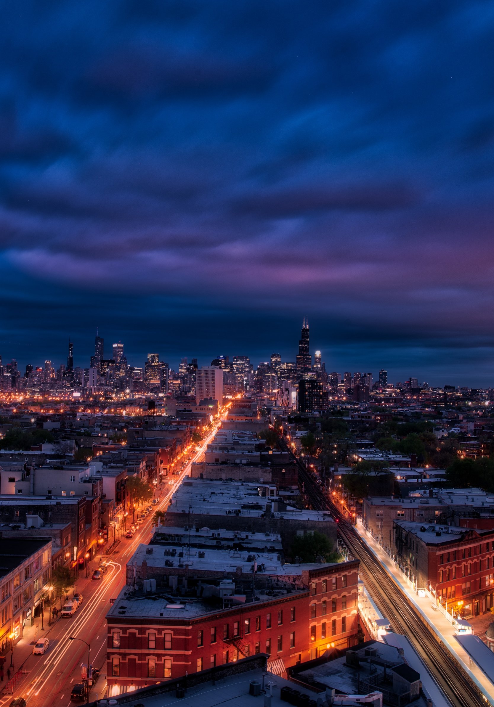 Обои: Чикаго, ночной город, мегаполис - 1668x2388