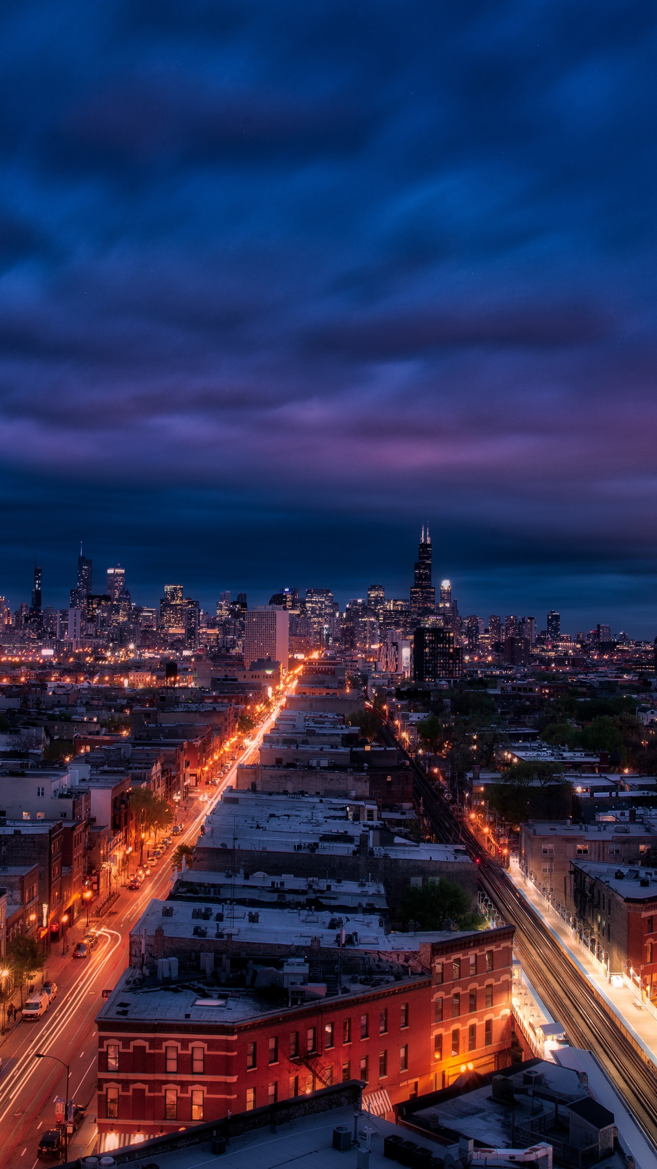 Обои: Чикаго, ночной город, мегаполис - 2160x3840