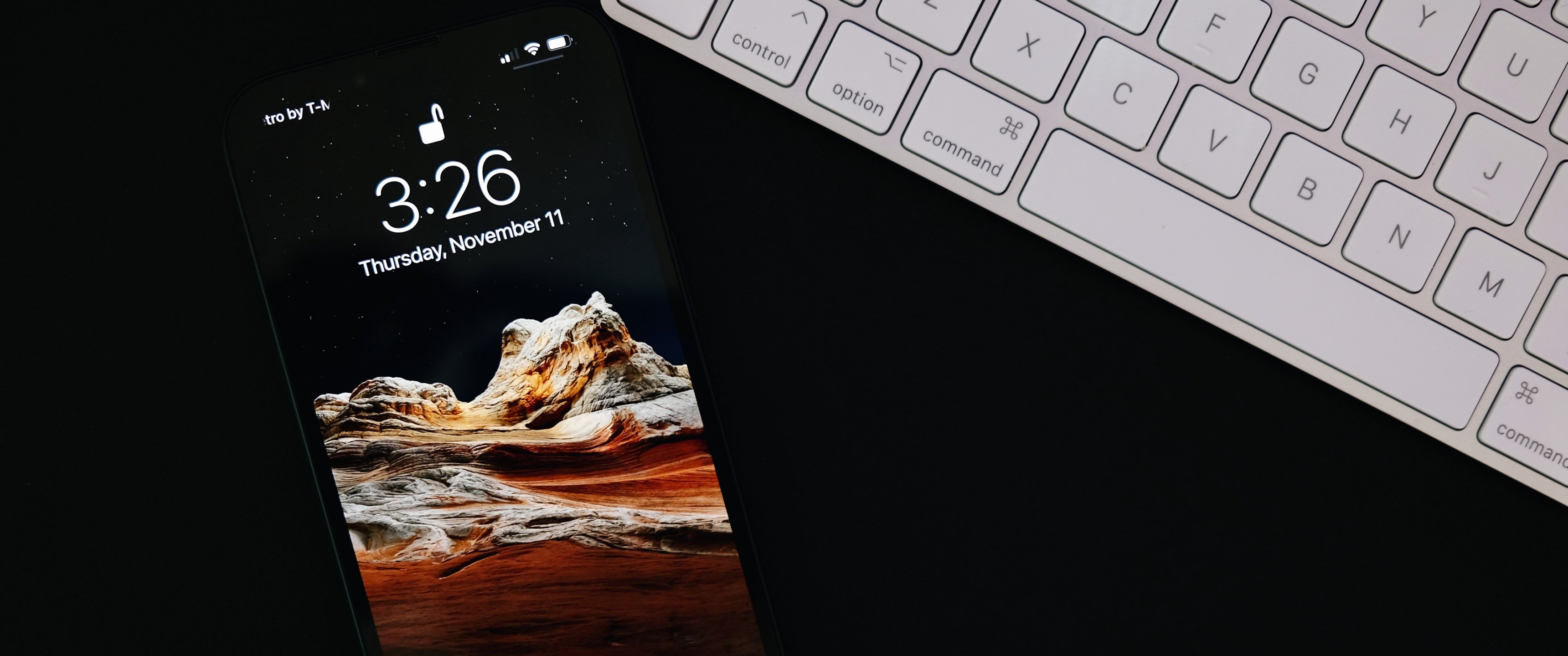 Обои: смартфон, клавиатура, черный - 3440x1440