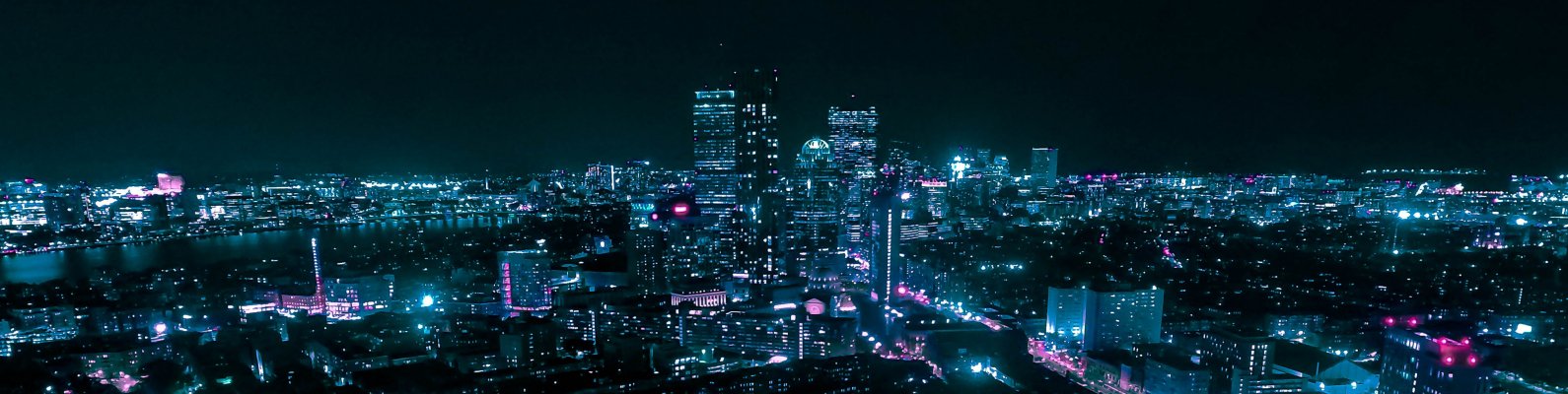 Обои: Бостон, вид с высоты птичьего полета, ночной город - 1590x400