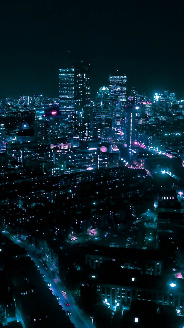 Обои: Бостон, вид с высоты птичьего полета, ночной город - 640x1136