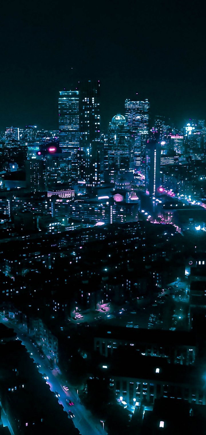 Обои: Бостон, вид с высоты птичьего полета, ночной город - 720x1520