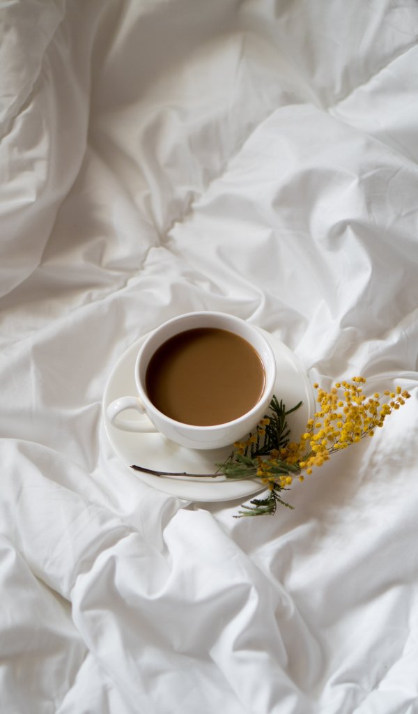 Обои: чашка кофе, эстетика белого - 600x1024