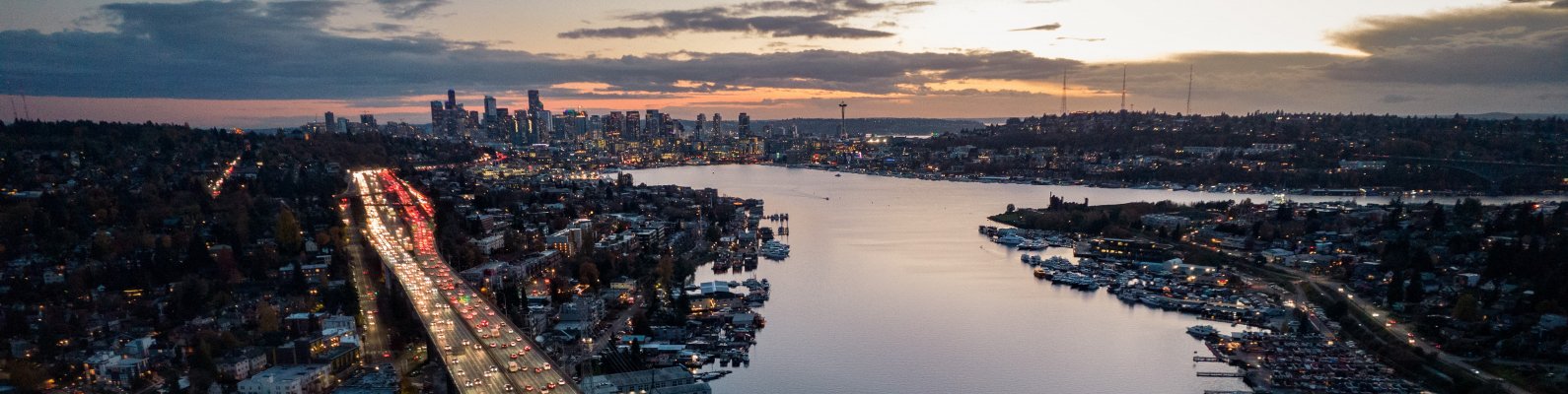 Обои: Вашингтон, вид с высоты птичьего полета, ночной город - 1590x400