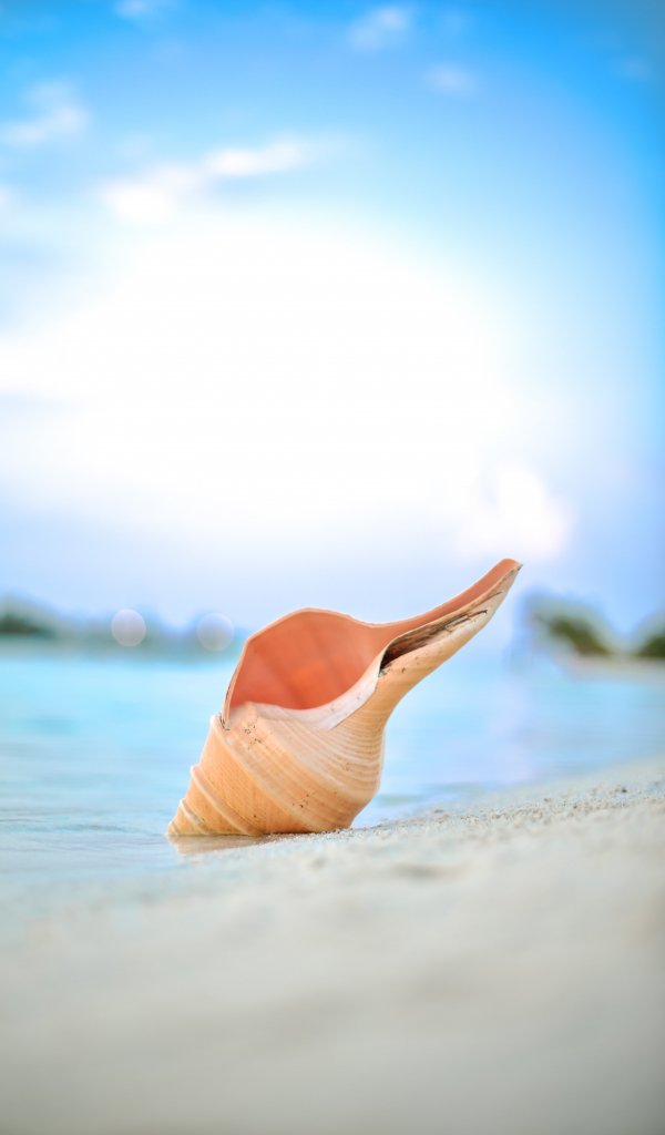 Обои: Мальдивы, ракушка, пляж - 600x1024