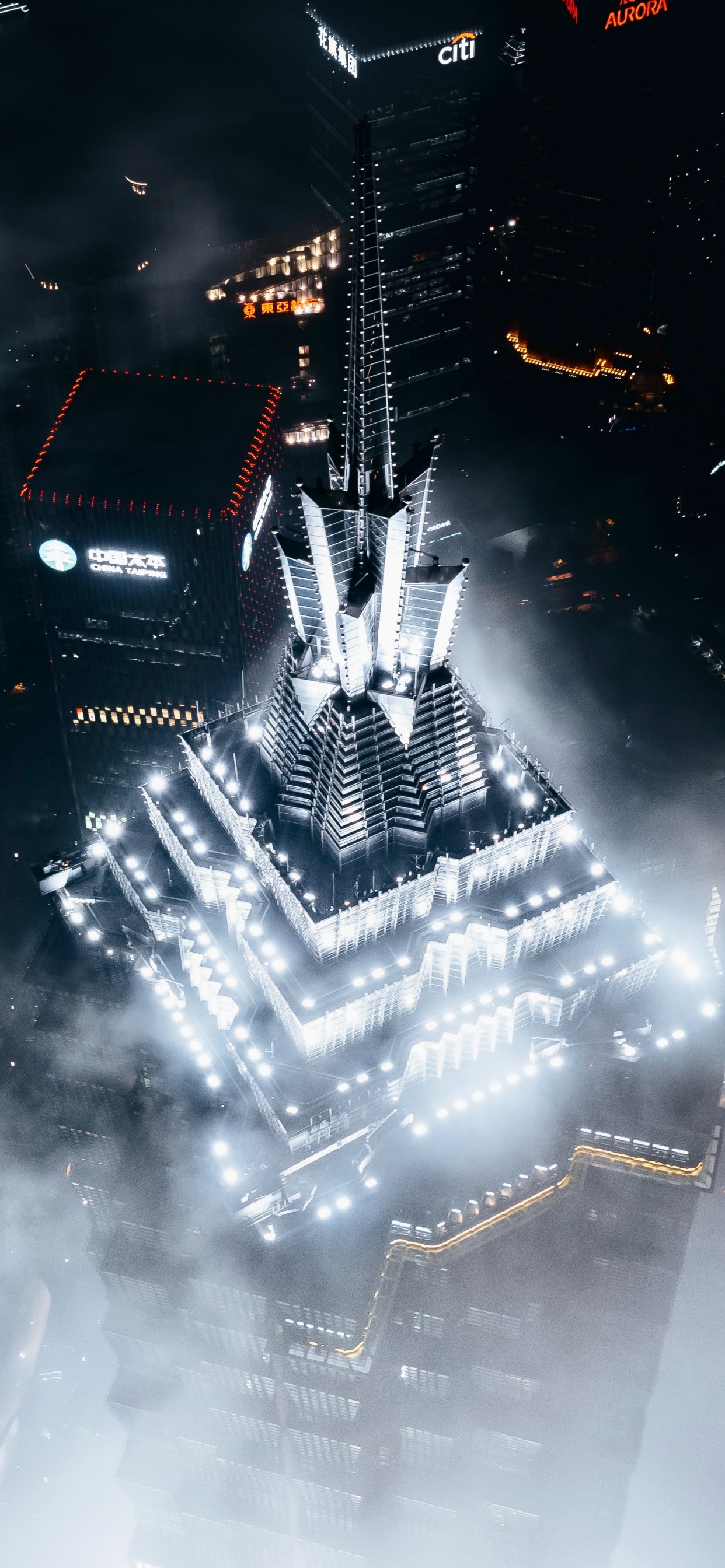 Обои: Шанхай, вид с высоты птичьего полета, небоскреб - 1242x2688