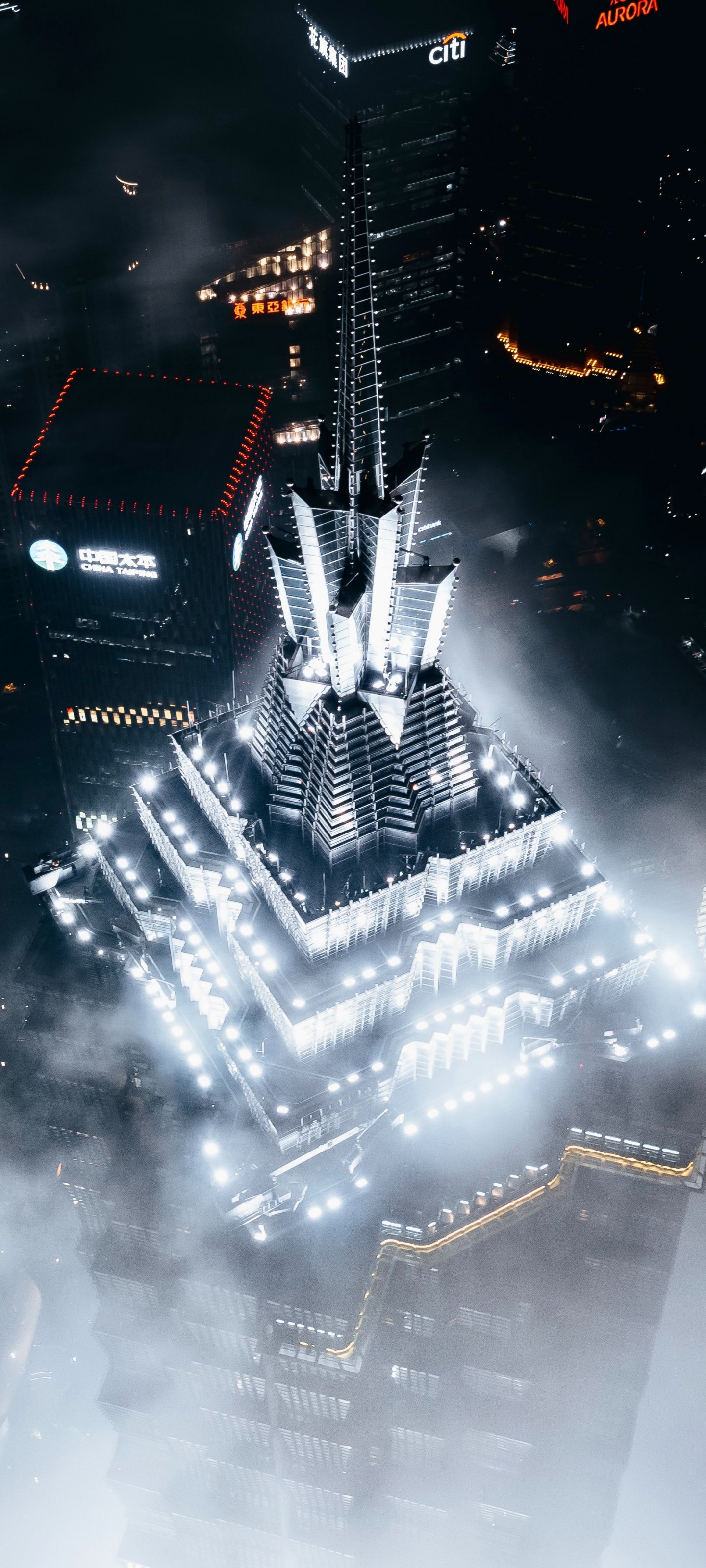 Обои: Шанхай, вид с высоты птичьего полета, небоскреб - 1440x3200