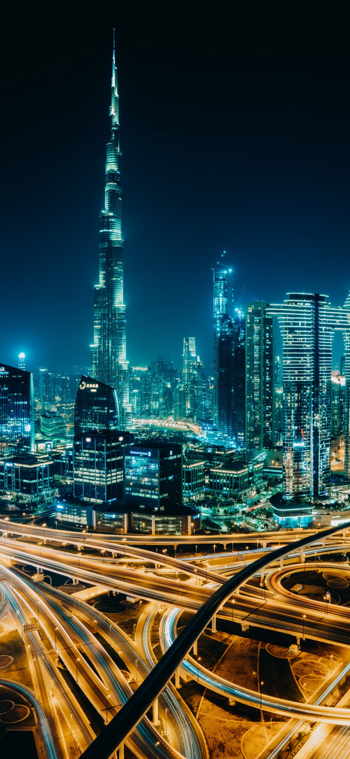 Обои: Дубай, ОАЭ, ночной город - 1170x2532