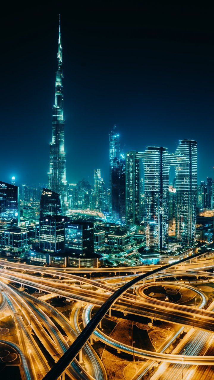 Обои: Дубай, ОАЭ, ночной город - 720x1280