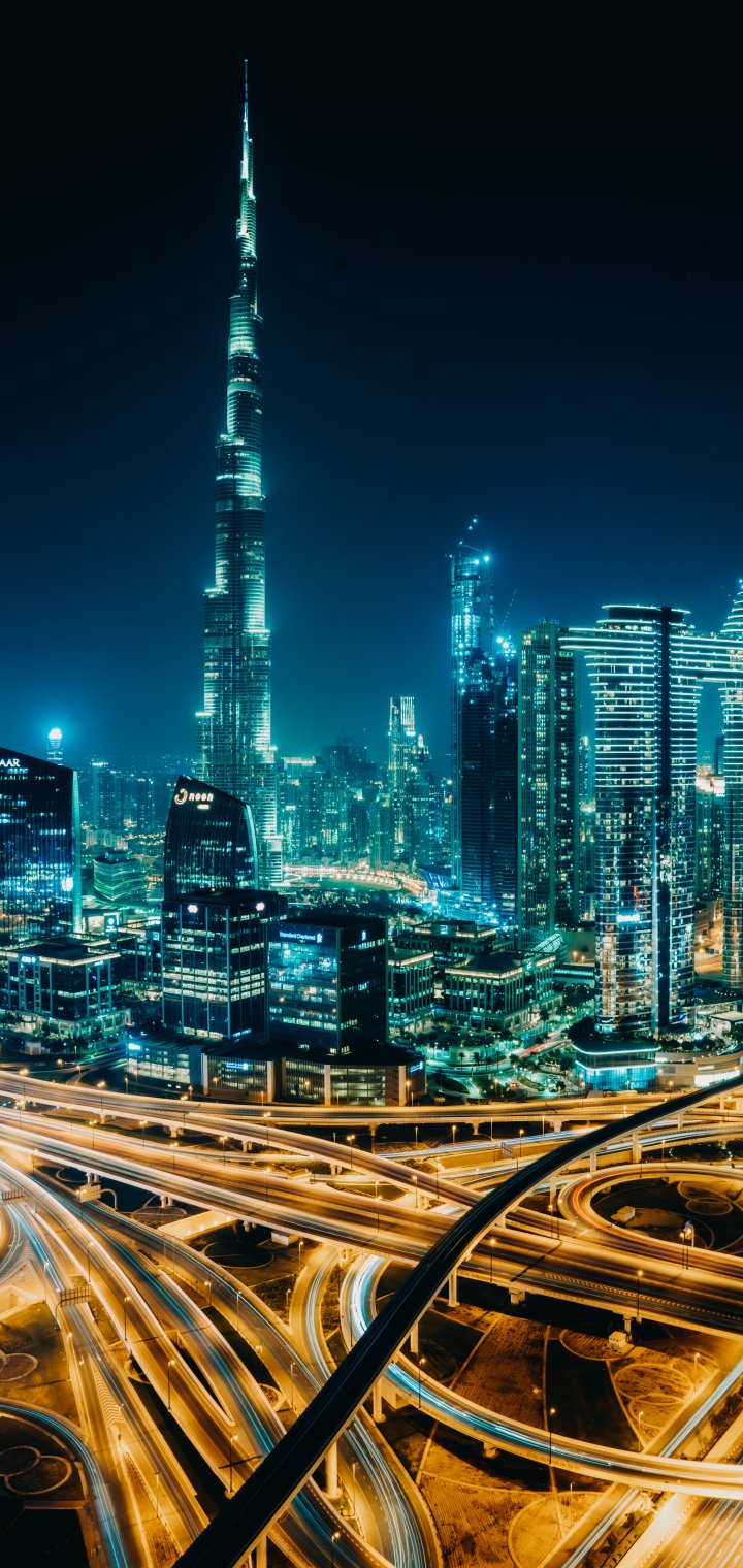 Обои: Дубай, ОАЭ, ночной город - 720x1520