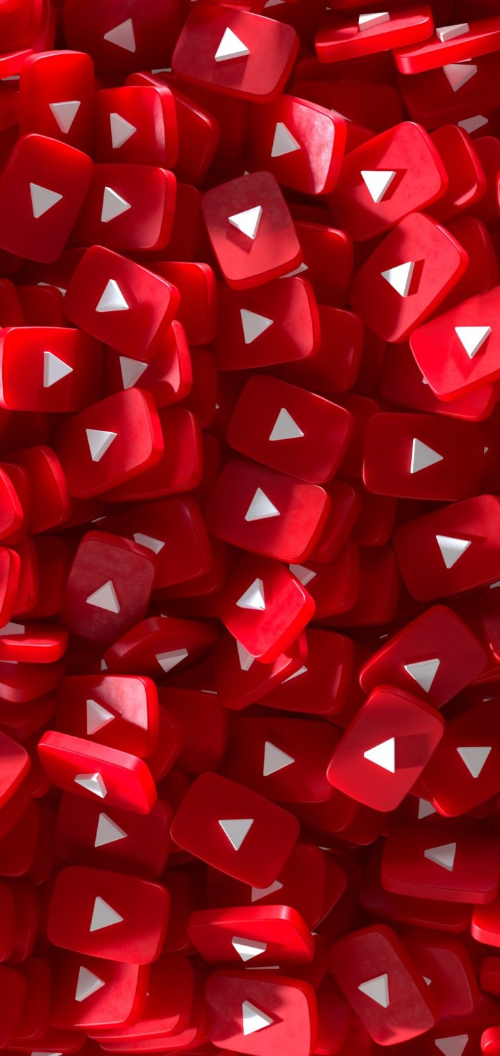 Обои: YouTube, красный, 3D - 720x1520