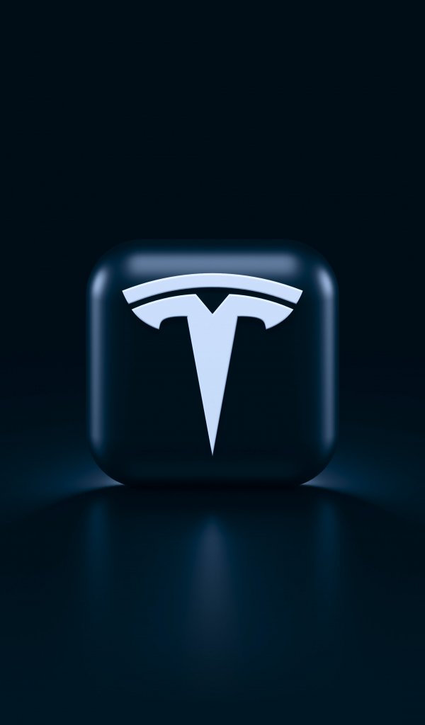 Обои: Tesla, логотип, черный - 600x1024