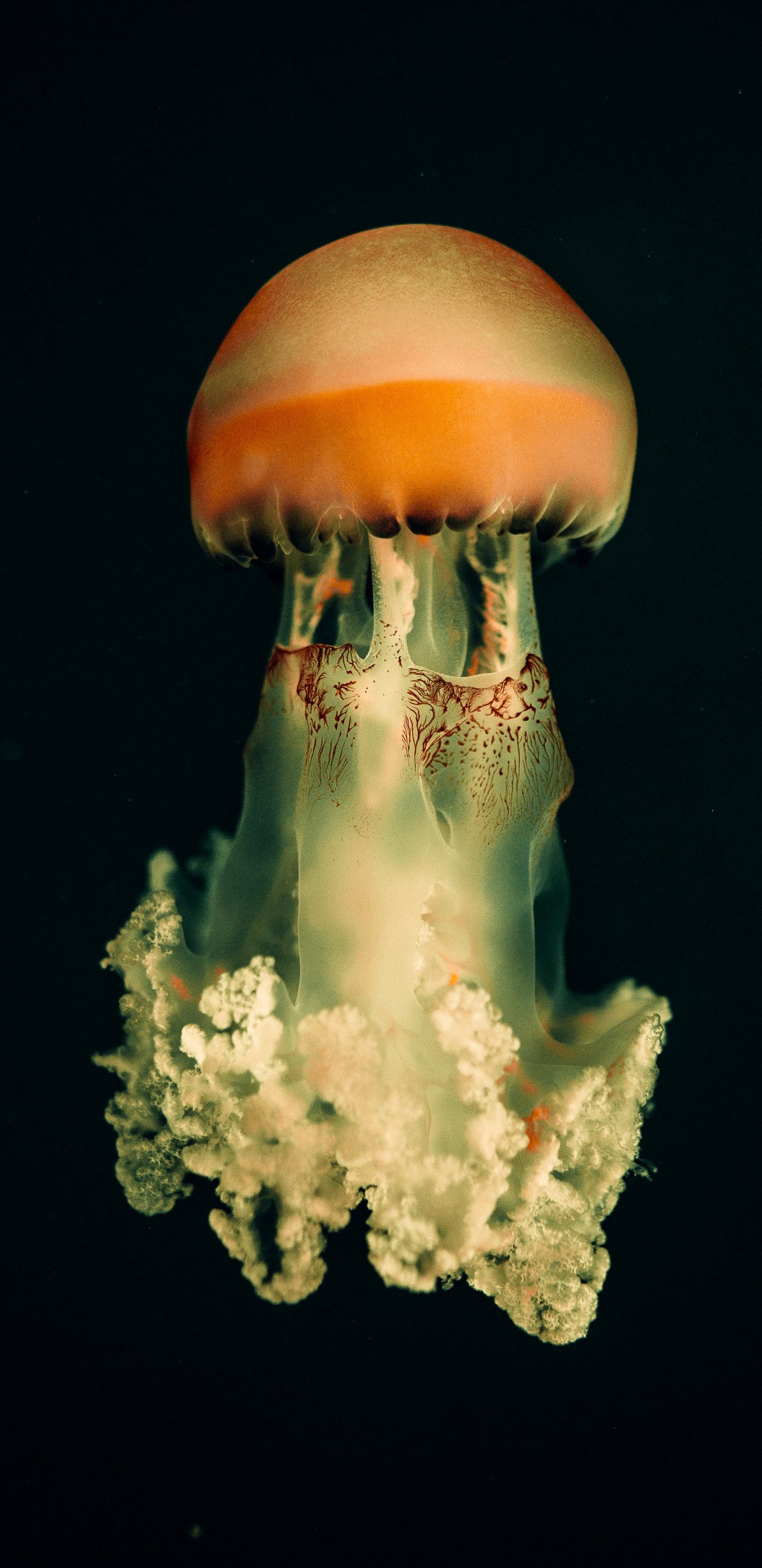 Обои: медуза, подводный мир, на черном фоне - 1440x2960