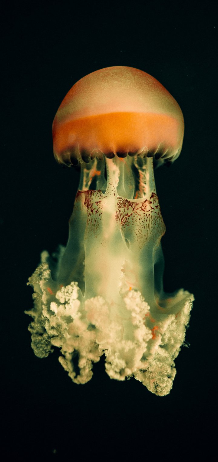 Обои: медуза, подводный мир, на черном фоне - 720x1520